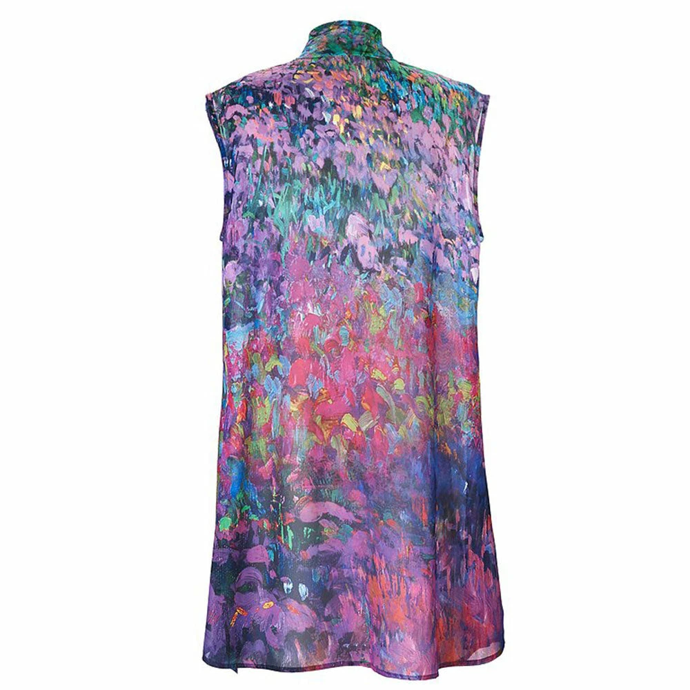 Slipping your arms into this versatile top feels like wrapping yourself in flowers.ย Soft, lightweight and romantic, it layers perfectly with jeans, casual wear and date-night dresses.ย Its flattering length, gentle drape and open front help you look taller and more sleek than ever, while the angled hem hints of magic and whimsy.ย A sleeveless, gauzy delight for any time of the year.ย Sizes S, M, L and XL. 100% polyester; hand wash.