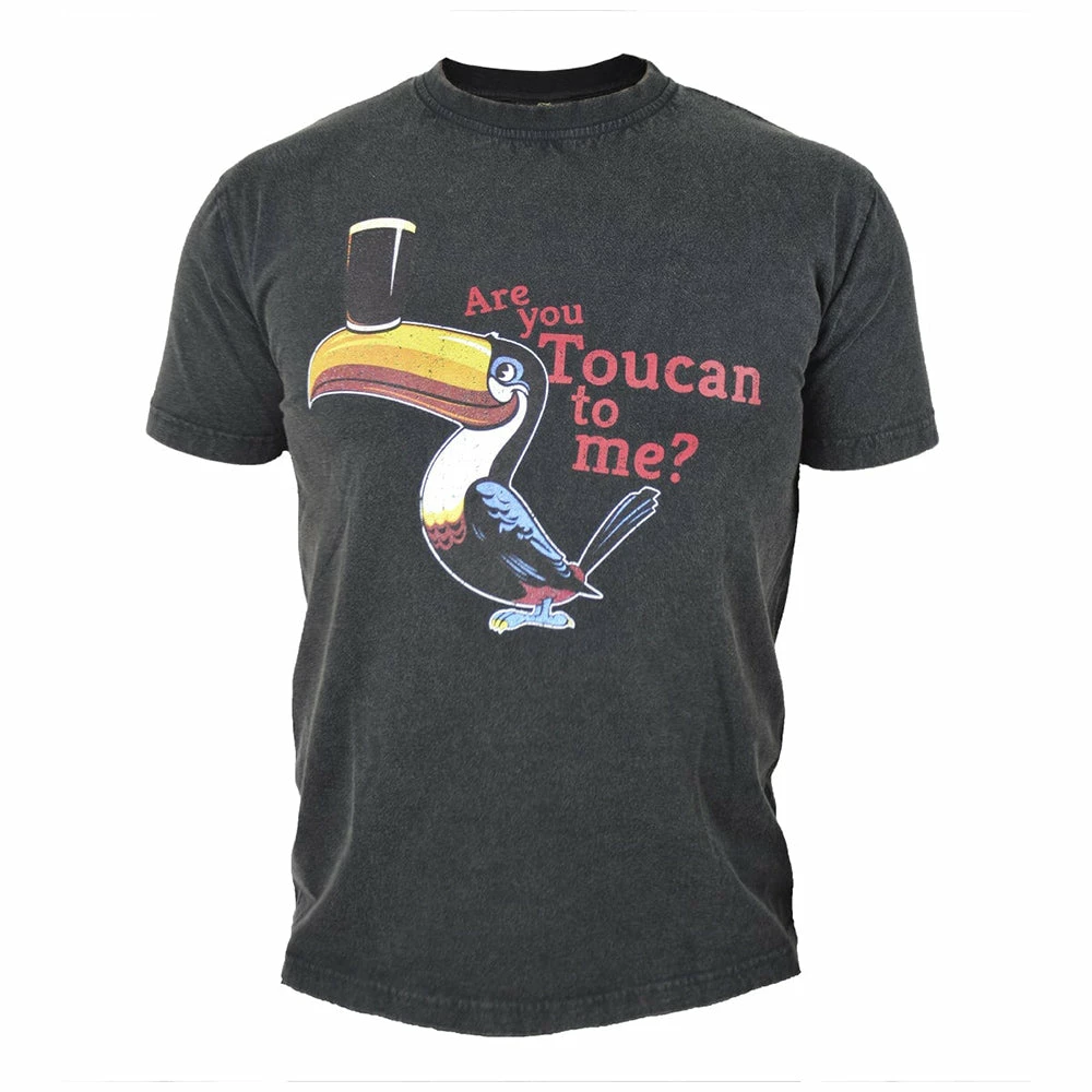 These graphic tees feature a front distressed print, the garment wash gives a vintage look and all the same qualities of a great fitting t-shirt with classic Guinness graphics. The tee comes in a washed grey color with a distressed Guinness® Toucan & ‘Are You Toucan to me’ screen printed on the front.
