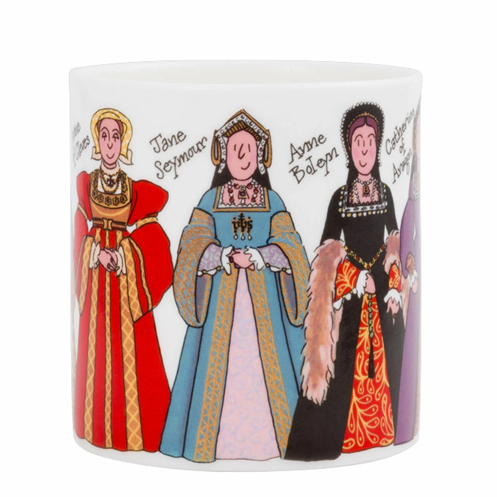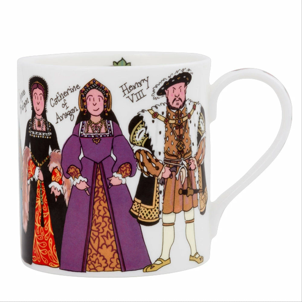 ThisΒ Henry VIII collection remembers England’s most infamous King, remembered by his legacy of having six wives and the creation of the Church of England. This design features all six wives next to the King, with decorations of the traditional Tudor rose adorning the handle and inside motif. It is the perfect mug for lovers of the Tudors and British history, and makes a great talking point around your coffee table!