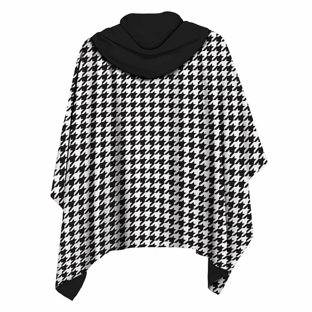 Reversible, water repellent and lightweight, with a luxurious soft feeling this houndstooth raincape has invisible magnets strategically placed to keep intact on a windy day.